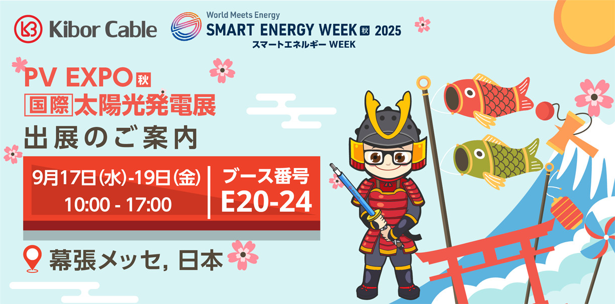 KIBOR CABLEは、2025年9月17日(水)から19日(金)まで千葉県の幕張メッセに開催される「PV EXPO【秋】〜第21回[国際]太陽光発電展」に出展いたします。